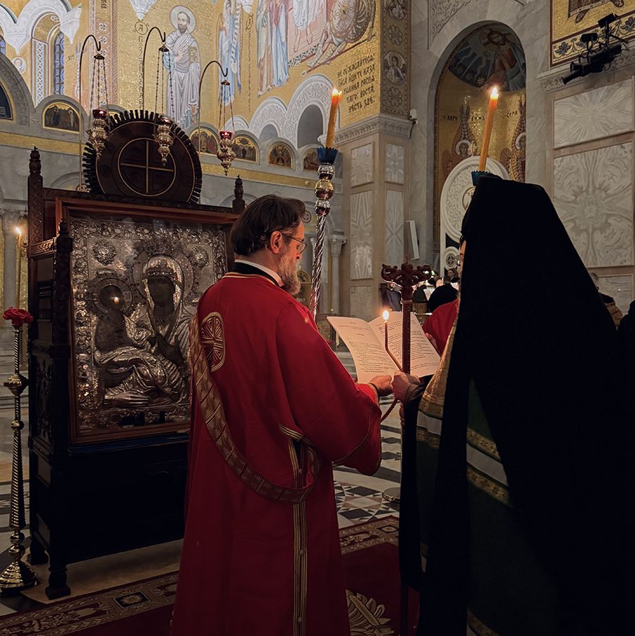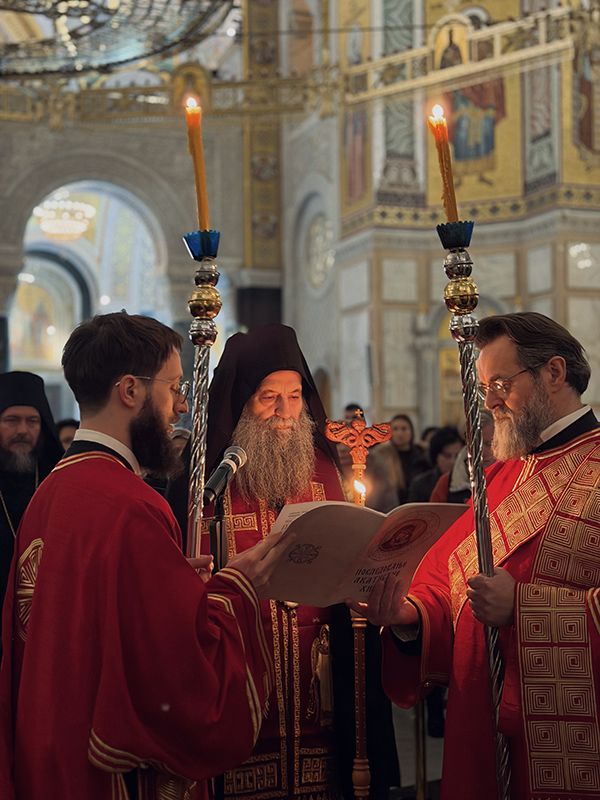 Την Παρασκευή, την πρώτη εβδομάδα της Μεγάλης και Αγίας Σαρακοστής, 27 Φεβρουαρίου 2026, ο Μακαριώτατος Πατριάρχης Σερβίας κ.κ. Πορφύριος χοροστάτησε στην ακολουθία του Ακαθίστου Ύμνου στην Υπεραγία Θεοτόκο ενώπιον της Εικόνας της Παναγίας Τριχερούσας στον Ιερό Ναό του Αγίου Σάββα στο Βράτσαρ.