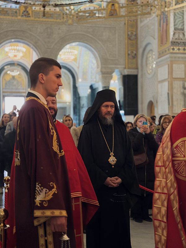 Η αδελφότητα του Ναού του Αγίου Σάββα πλαισίωσε τον Πατριάρχη κ.κ. Πορφύριο, με την προσευχητική συμμετοχή του Θεοφιλεστάτου Επισκόπου Λίπλιανης κ. Δοσιθέου, καθηγητών και φοιτητών της Ορθόδοξης Θεολογικής Σχολής Βελιγραδίου, του κλήρου της Αρχιεπισκοπής Βελιγραδίου-Καρλοβικίου και του πιστού λαού του Θεού.