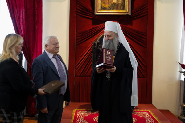 Τιμητική πλακέτα σε ένδειξη ευγνωμοσύνης και ανιδιοτελούς αγάπης για την στήριξη την οποία παρέχει σε τυφλούς και άτομα με περιορισμένη όραση απένειμε ο Σύλλογος Τυφλών Σερβίας στον Πατριάρχη Σερβίας κ.κ. Πορφύριο.
