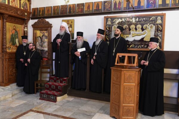 Μετά το πέρας της δοξολογίας που τελέστηκε ο οικείως Μητροπολίτης Τριπόλεως κ. Εφραίμ καλωσόρισε τον Προκαθήμενο της Σερβικής τονίζοντας μεταξύ άλλων: “Σήμερα το μοναστήρι μας έχει ιδιαίτερη ευλογία με την επίσκεψη σας εδώ Μακαριώτατε. Με την επίσκεψή σας επιβεβαιώνετε ότι είμαστε μία Ορθόδοξη Εκκλησία και καλλιεργούμε την ενότητά της, ότι είμαστε παντού μοναδικοί ως μία Εκκλησία στον κόσμο. Όλοι πρέπει να φρουρούμε σθεναρά αυτή την ενότητα, να ξεπεράσουμε κάθε δυσκολία, και μαζί όλα τα προβλήματα αυτών των πολέμων που μας προκαλούν οι μεγάλες δυνάμεις”.