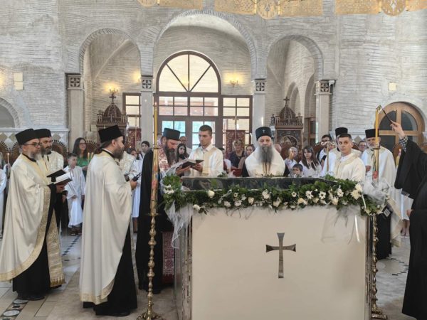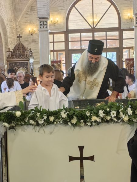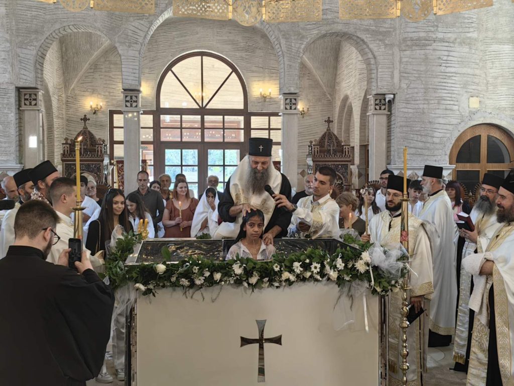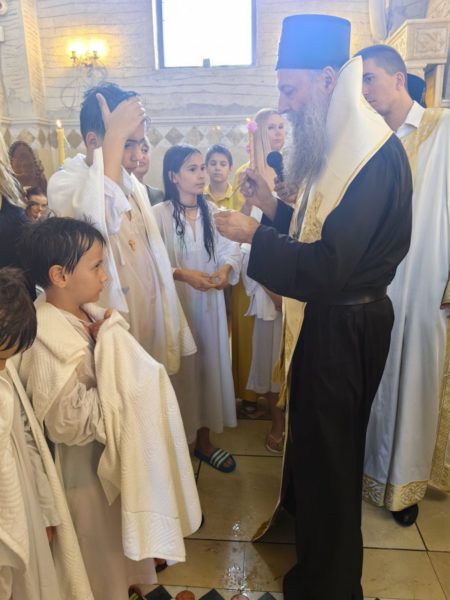 Ο Πατριάρχης Σερβίας κ.κ. Πορφύριος τέλεσε χθες, στον Ιερό Ναό Αγίου Συμεών του Μυροφόρου στο Νέο Βελιγράδι, το Ιερό Μυστήριο της βάπτισης μαθητών των δημοτικών σχολείων Γιόβαν Ντούτσιτς και Βάσα Πέροβιτς.