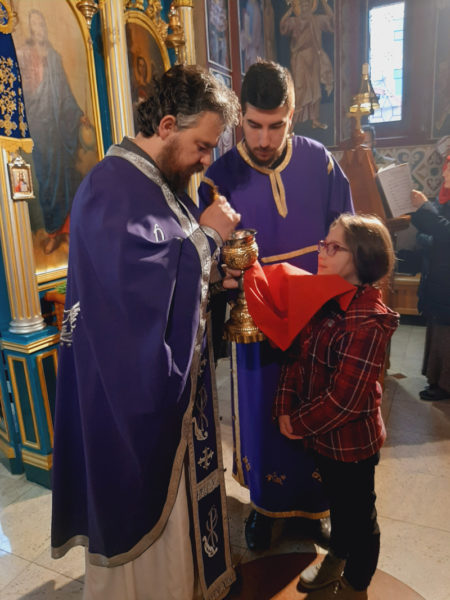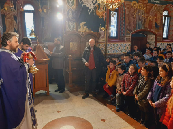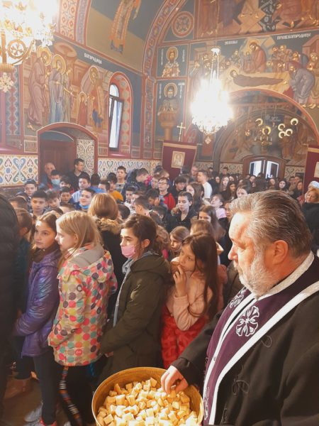 Πάνω από εκατό μαθητές του Δημοτικού Σχολείου “Δέσποτης Στέφαν Λαζάρεβιτς” συμμετείχαν στην Προηγιασμένη Θεία Λειτουργία που τελέστηκε χθες Τετάρτη στον Ιερό Ναό Προφήτη Ηλία στο Mirijevo του Βελιγραδίου, κατά τη διάρκεια της Θείας Λειτουργίας των Προηγιασμένων Δώρων.
