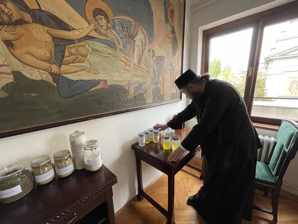 Έτσι, μετά την Θεία Λειτουργία που τελέστηκε στο παρεκκλήσιο του Αγίου Συμεών του Μυροβλύτη στην έδρα του Πατριαρχείου στο Βελιγράδι, ο Επίσκοπος Ραμεσιάνας κ. Σάββας διάβασε την ειδική ευχή για την έναρξη της διαδικασίας η οποία θα ολοκληρωθεί με την ευλογία του Αγίου Μύρου από τον Πατριάρχη Σερβίας κ.κ. Πορφύριο τη Μεγάλη Πέμπτη το πρωί.