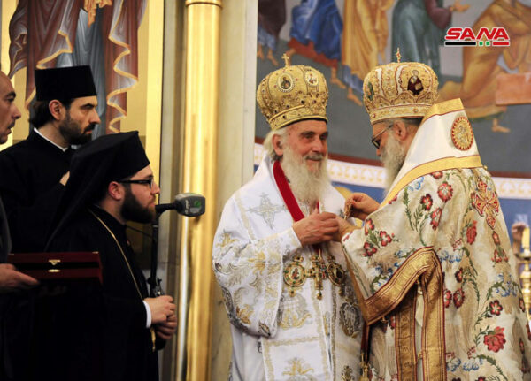 Επίσημη επίσκεψη στο Πατριαρχείο Αντιοχείας πραγματοποιεί ο Πατριάρχης Σερβίας κ.κ. Ειρηναίος. Σήμερα το πρωί τελέστηκε Πατριαρχικό Συλλείτουργο στον Ιερό Ναό της Υψώσεως του Τιμίου Σταυρού στη Δαμασκό με τη συμμετοχή του Πατριάρχη Αντιοχείας κ.κ. Ιωάννη καθώς επίσης και Επισκόπων των δύο Πατριαρχείων.