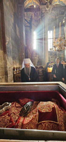 Μετά από πανηγυρική υποδοχή από τη μοναστική αδελφότητα και τον ηγούμενο Σάββα, ο Μακαριώτατος προσκύνησε τα λείψανα του Αγίου Στέφανου Βασιλιά των Σέρβων και Κτίτορα της μονής.