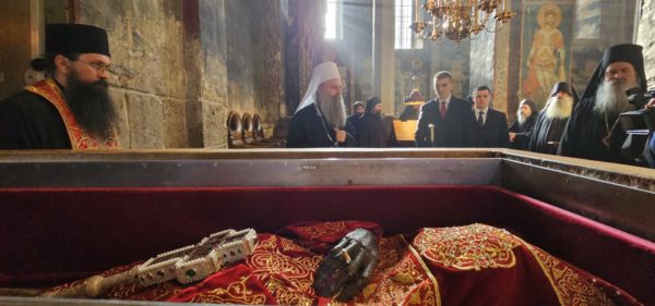 Μετά από πανηγυρική υποδοχή από τη μοναστική αδελφότητα και τον ηγούμενο Σάββα, ο Μακαριώτατος προσκύνησε τα λείψανα του Αγίου Στέφανου Βασιλιά των Σέρβων και Κτίτορα της μονής.