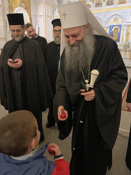Κατά την εορτή της Αναστάσεως του Κυρίου Ιησού Χριστού, 24 Απριλίου 2022, ο Πατριάρχης Σερβίας κ.κ. Πορφύριος τέλεσε τον πανηγυρικό Εσπερινό της Αγάπης στον Καθεδρικό Ναό του Αγίου Σάββα στο Βρακάρ.