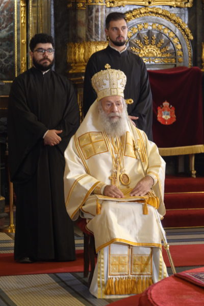 Μετά την απόλυση της Θείας Λειτουργίας, ο Μακαριώτατος είπε: “Συγχαίρουμε την Πρώτη Ψαλτική Εταιρεία Βελιγραδίου και σας ευχαριστούμε για τις υπέροχες ψαλμωδίες στη σημερινή Λειτουργία”.