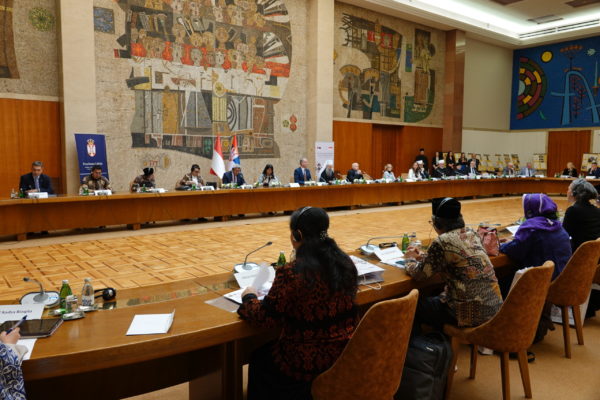 Για περισσότερες από τρεις δεκαετίες, η Ινδονησία διεξάγει διαθρησκευτικούς διαλόγους με χώρες από όλο τον κόσμο. Ο πρώτος διμερής διαθρησκευτικός διάλογος μεταξύ Σερβίας και Ινδονησίας, που διοργανώθηκε στο Βελιγράδι το 2011, αξιολογήθηκε από τους Ινδονήσιους ως τον πιο επιτυχημένο. Συνεχίστηκε το 2013 στην Τζακάρτα, με τη συμμετοχή του Μακαριστού Πατριάρχη Σερβίας κυρού Ειρηναίου. Ο τρίτος διμερής διαθρησκειακός διάλογος μεταξύ Σερβίας και Ινδονησίας πραγματοποιήθηκε στο Βελιγράδι το 2015. Με την ευκαιρία αυτή, η Ινδονησία υποστήριξε τη Δημοκρατία της Σερβίας, διότι, κατά τη διάρκεια της διάσκεψης στο Παρίσι, καταψήφισε την ένταξη του Κοσσυφοπεδίου στην UNESCO. Ο τέταρτος διαθρησκειακός διάλογος διεξήχθη το 2019 στη Γιογκιακάρτα και φέτος στη Δημοκρατία της Σερβίας, και συγκεκριμένα στη Διεύθυνση Συνεργασίας με Εκκλησίες και Θρησκευτικές Κοινότητες του Υπουργείου Δικαιοσύνης.