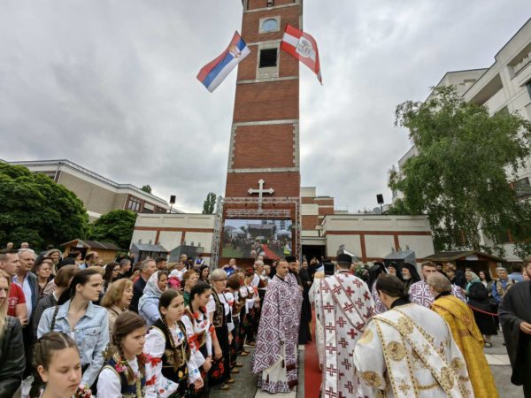 Ο Προκαθήμενος της Σερβικής Εκκλησίας ο οποίος πραγματοποιεί επίσημη επίσκεψη στην Επισκοπή Αυστρίας-Ελβετίας του Πατριαρχείου Σερβίας προέστη του πολυαρχιερατικού συλλείτουργου που τελέστηκε χθες, Κυριακή 11 Ιουνίου 2023. Το Συλλείτουργο τελέστηκε σε υπαίθριο σ ειδική εξέδρα που είχε στηθεί στον περιβάλλοντα χώρο του ναού.