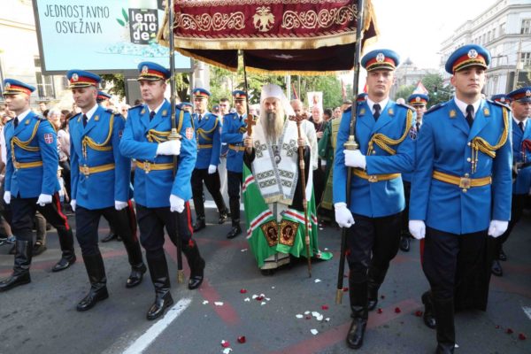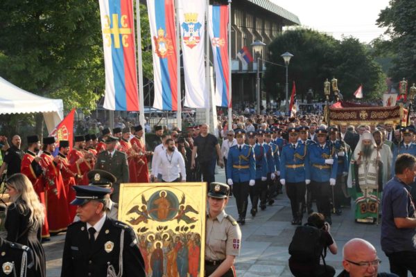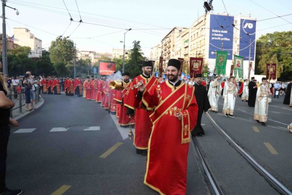 Η καθιερωμένη λιτανεία του Σωτήρος, όπως την ονομάζουν οι σέρβοι, ξεκίνησε από την οδό Kneza Miloša, συνοδευόμενη από τον ήχο των καμπάνων του ναού της Κοιμήσεως της Θεοτόκου. Ο Πατριάρχης Πορφύριος ηγήθηκε της πομπής ενώ περιστοιχιζόταν από άνδρες της Φρουράς του Σερβικού Στρατού και νέους με παραδοσιακές φορεσιές.