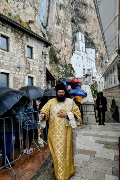 Πλήθος νέων προσκύνησαν τον Άγιο Βασίλειο του Όστρογκ παρά την καταρρακτώδη βροχή