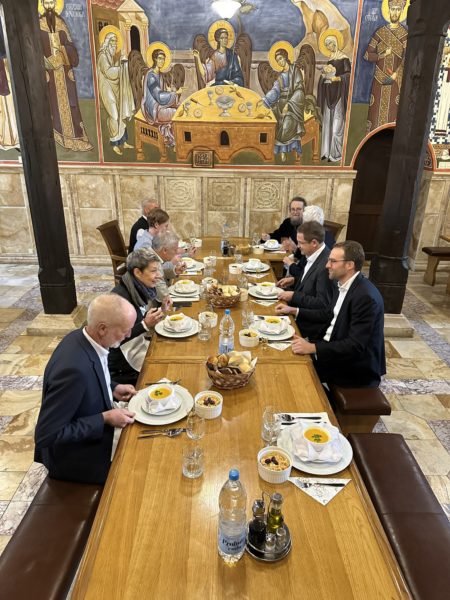 Μετά την επίσκεψη στο μοναστήρι, παρατέθηκε γεύμα κατά τη διάρκεια του οποίουακολούθησε συζήτηση με τον Ηγούμενο της μονής, Γέροντα Σάββα.