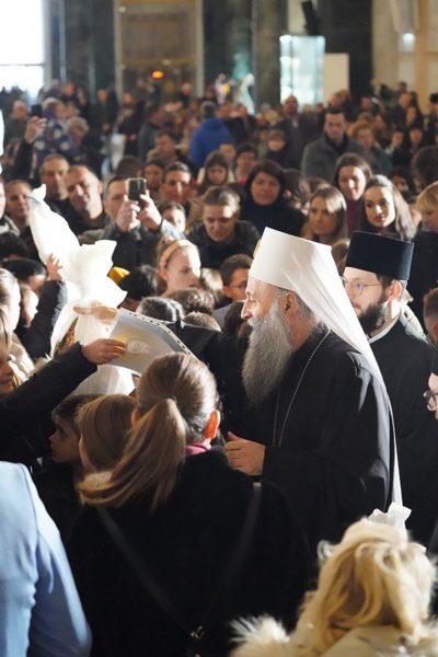 Με αφορμή την εορτή του Αγίου Σάββα, Αρχιεπισκόπου Σερβίας, ο Πατριάρχης Σερβίας κ.κ. Πορφύριος διένειμε δέματα με δώρα σε περισσότερους από δύο χιλιάδες μαθητές που παρακολουθούν το μάθημα των Θρησκευτικών σε σχολεία της Αρχιεπισκοπής Βελιγραδίου και Καρλοβικίου κατά τη διάρκεια εορταστικής εκδήλωσης που πραγματοποιήθηκε το Σάββατο 31 Ιανουαρίου 2026, στον Καθεδρικό Ναό του Αγίου Σάββα στο Βράτσαρ .