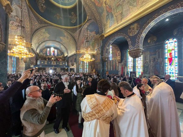 Παρά την χιονόπτωση που επικρατούσε στην περιοχή, πλήθος κλήρου και λαού προσήλθαν και κατέκλυσαν τον Ναό προκειμένου να προσευχηθούν και να συναντήσουν τον Μακαριώτατο Πατριάρχη κ.κ. Πορφύριο.