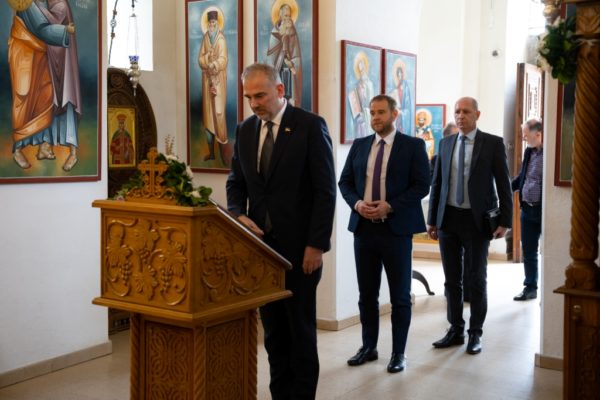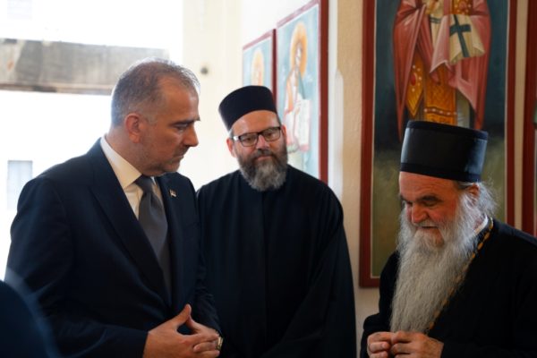 Ο κ. Ρογκάνοβιτς έτυχε θερμής υποδοχής στον Ιερό Καθεδρικό Ναό του Αγίου Γεωργίου από αντιπροσωπεία της Ιεράς Επισκοπής με επικεφαλής τον Πανιερώτατο Επίσκοπο κ. Δαβίδ, καθώς και από εκπροσώπους των τοπικών αρχών.
