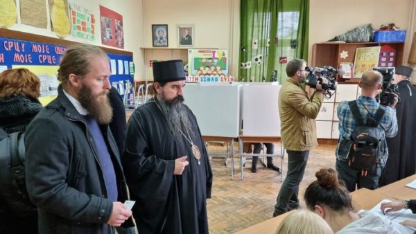 Το εκλογικό του δικαίωμα άσκησε χθες και ο Πατριάρχης Σερβίας κ.κ. Πορφύριος προσερχόμενος στην κάλπη, μετά το πέρας της Θείας Λειτουργίας που τέλεσε στον Ιερό Ναό του Αγίου Ιωάννου του Βλαδιμίρου στο Βελιγράδι, στο 50ο εκλογικό τμήμα της σερβικής πρωτεύουσας.