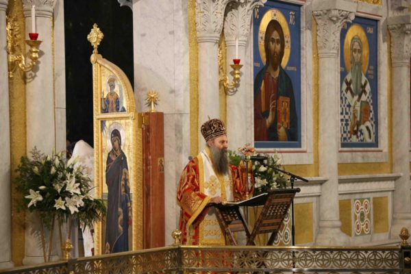 Ο Πατριάρχης Σερβίας κ.κ. Πορφύριος, την Κυριακή της Ορθοδοξίας, προέστη της Θείας Λειτουργίας στον Ιερό Ναό του Αγίου Σάββα στο Βελιγράδι. Ο Μακαριώτατος, μεταξύ άλλων, υπογράμμισε ότι η στάση μας είναι πάντα έκφραση της πίστης μας, έκφραση του συστήματος αξιών που ζούμε, και αυτό το σύστημα αξιών περιέχεται στο Ευαγγέλιο του Χριστού.