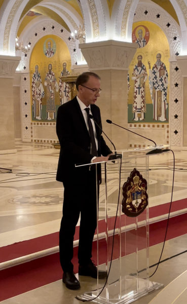 Κεντρικός ομιλητής ήταν ο Μακαριώτατος Πατριάρχης κ.κ. Πορφύριος ο οποίος ανέπτυξε το θέμα: “Κήρυγμα επί της αληθούς πίστεως”, κάνοντας ιδιαίτερη αναφορά στο έργου του Αγίου Σάββα και στην καθοριστική συμβολή της Θεολογικής Σχολής του Βελιγραδίου στην ανάπτυξη των θεολογικών γραμμάτων στη σύγχρονη Σερβία. Παράλληλα, μίλησε για όσα οδηγούν στην Αληθινή Πίστη που δεν άλλα από την Αγία Γραφή και την παράδοση της Εκκλησίας.