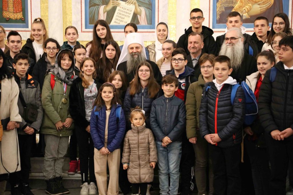 Μετά το πέρας της Ευχαριστιακής Σύναξης ο Μακαριώτατος παρέστη και απηύθυνε χαιρετισμό σε εκδήλωση που έγινε με αφορμή το διεθνή διαγωνισμό “Διάσημοι Σέρβοι” στον οποίο συμμετείχαν παιδιά από τη Σερβία αλλά και παιδιά σερβικής καταγωγής από το εξωτερικό.