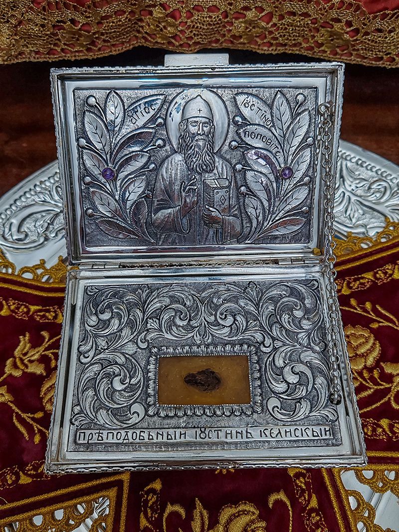 “Εδώ, είμαστε ευλογημένοι που ο Άγιος Ιουστίνος ήρθε σε εμάς, επέστρεψε, αν και δεν έφυγε ποτέ, για να προσευχόμαστε σε αυτόν, ώστε να είναι παράδειγμα προς μίμηση για τον καθένα μας, ώστε να είναι μια κλήση προς τον καθένα μας, ώστε κάθε λόγος, σκέψη, πράξη και όλα όσα είμαστε να ξεκινούν με προσευχή, να διαποτίζονται με προσευχή και να καταλήγουν στην προσευχή, ώστε να ισχύει και η αρχαία φράση που αποτελεί έκφραση της εμπειρίας των Πατέρων της Εκκλησίας: ότι είσαι αληθινός θεολόγος αν προσεύχεσαι και ότι αν προσεύχεσαι θα είσαι αληθινός θεολόγος“.