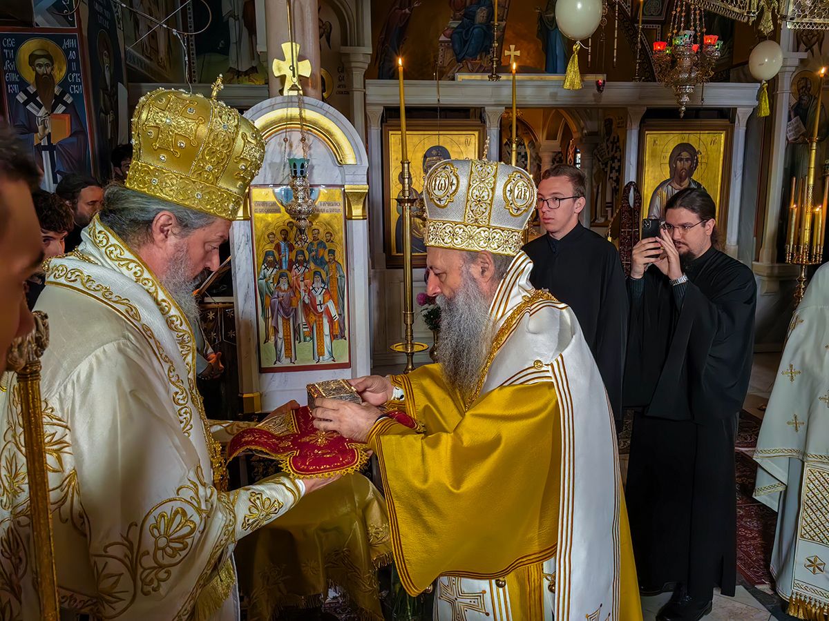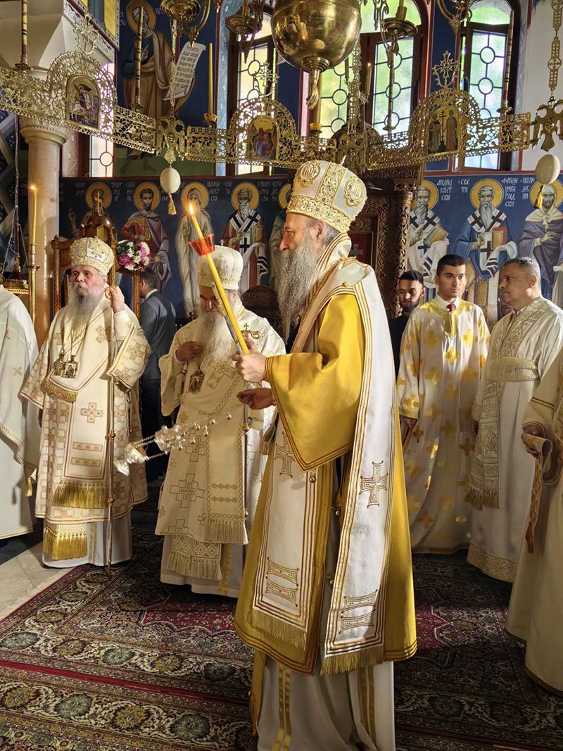 Με τον Μακαριώτατο Πατριάρχη συλλειτούργησαν ο Σεβασμιώτατος Μητροπολίτης Κρούσεβατς κ. Δαβίδ και ο Πανιερώτατος Επίσκοπος Βαλιέβου κ. Ησύχιος και ο Θεοφιλέστατος Επίσκοπος Ιενοπόλεως κ. Νίκων, με την προσευχητική συμμετοχή του Σεβασμιωτάτου Μητροπολίτη Μπάτσκας κ. Ειρηναίος και του Πανιερωτάτου Επισκόπου Λονδίνου, Μεγάλης Βρετανίας και Ιρλανδίας κ. Νεκτάριος και ο Θεοφιλέστατος Επίσκοπος Χουμ κ. Ιωάννης.