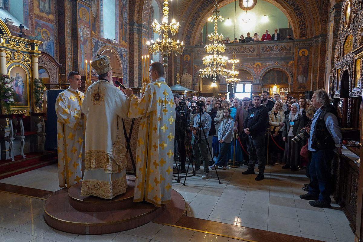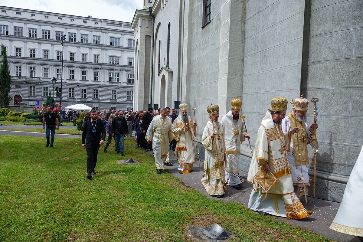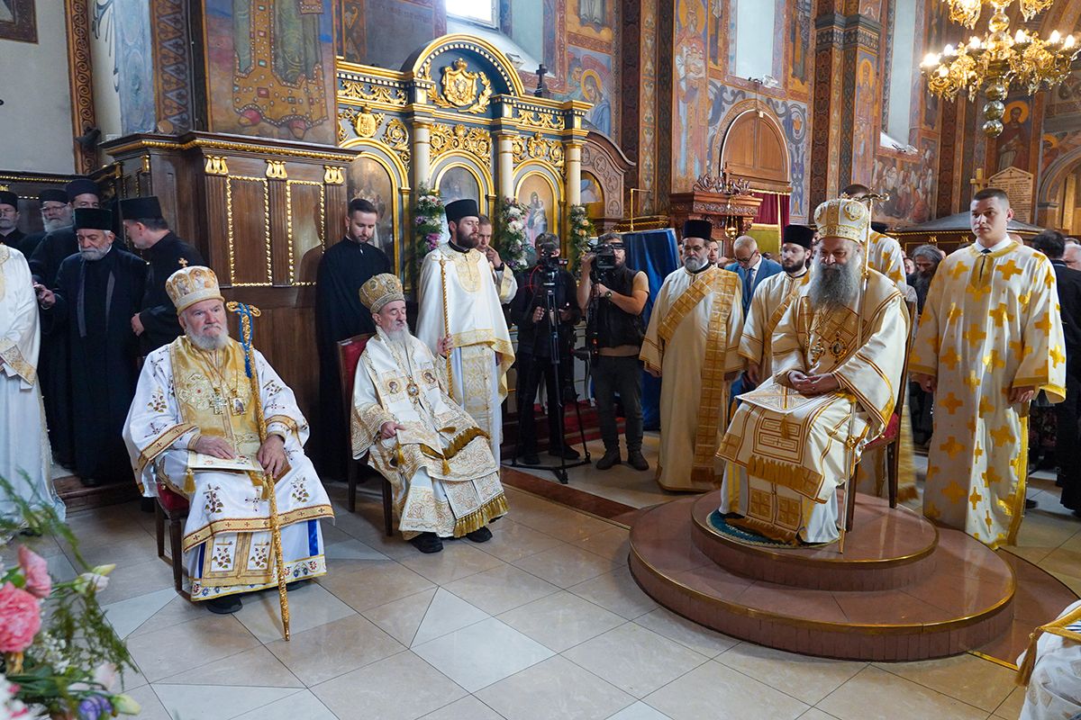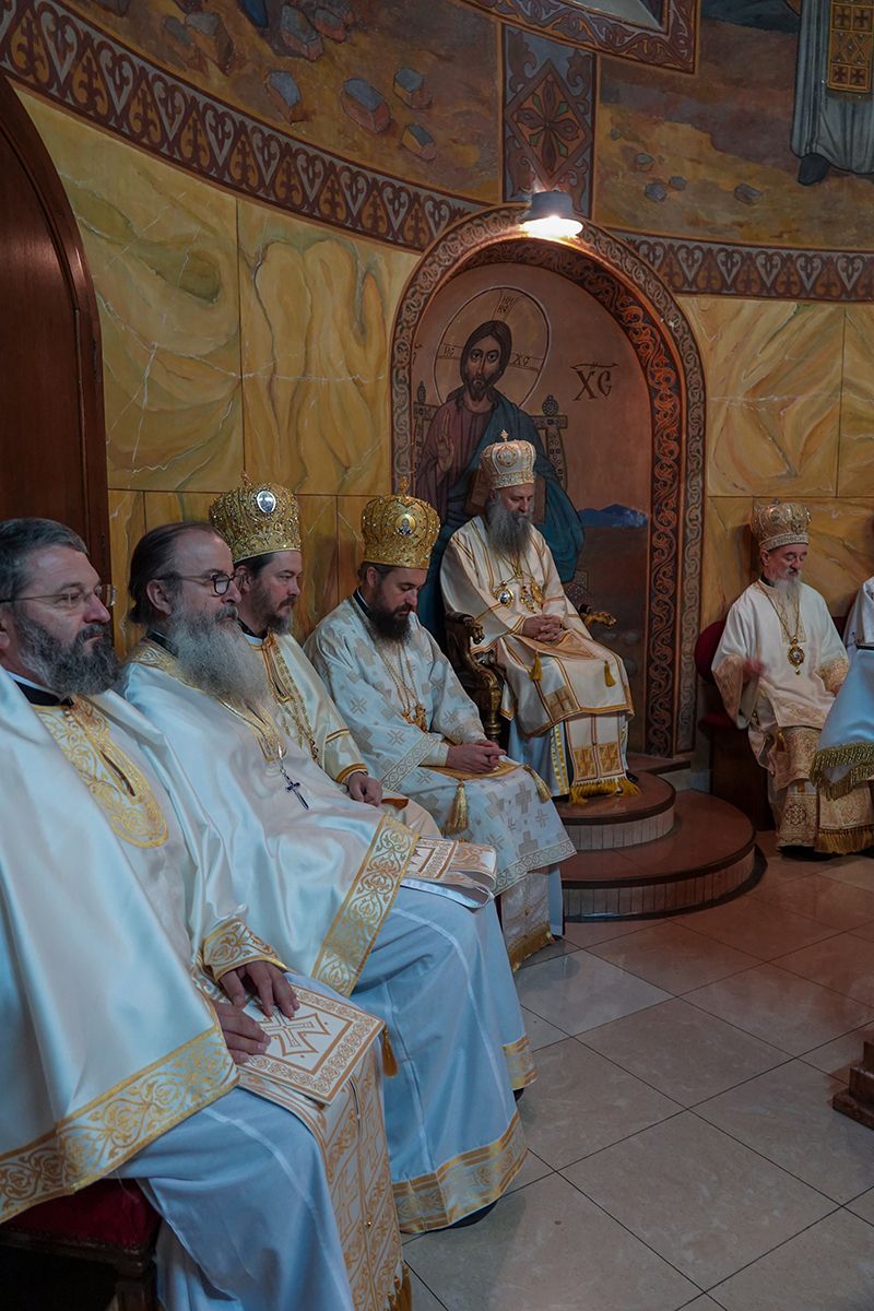 Με τον Μακαριώτατο Πατριάρχη συλλειτούργησε ο Σεβασμιώτατος Μητροπολίτης Μιλέσεβας κ. Αθανάσιος και οι Πανιερώτατοι Επίσκοποι Δυτικής Ευρώπης κ. Ιουστίνος, ο πρώην Καναδά κ. Γεώργιος και ο Θεοφιλέστατος Επίσκοπος Λιπλιάνης κ. Δοσίθεος, με πλήθος κλήρου.