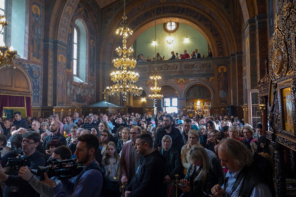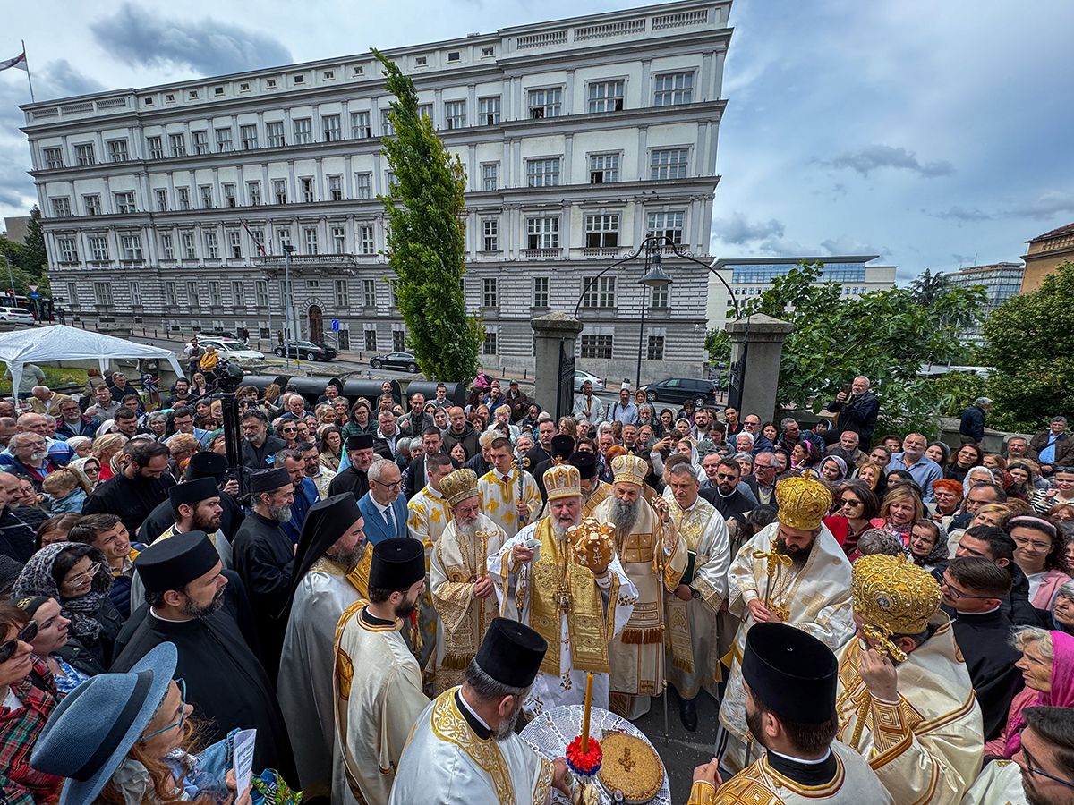 Εκατοντάδες πιστοί, σε προσευχητική σιωπή, συνέρρεαν αρμονικά και με αξιοπρέπεια προς την Εκκλησία της Αναλήψεως, στην οποία από την Τετάρτη, 28 Μαΐου 2025, εκτίθεται λάρνακα με το τίμιο χέρι του Αγίου Σάββα, του πρώτου Σέρβου Αρχιεπισκόπου, προς ευλογία και παρηγοριά των κατοίκων του Βελιγραδίου.