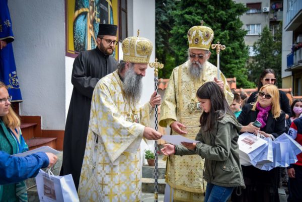 Μετά το πέρας των λατρευτικών εκδηλώσεων ο Πατριάρχης Σερβίας βράβευσε μαθητές και μαθήτριες που διακρίθηκαν σε διαγωνισμό ζωγραφικής και λογοτεχνίας.