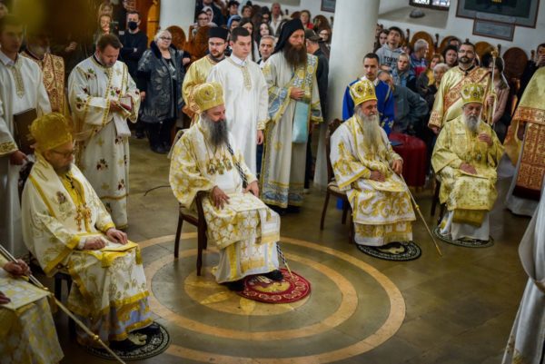 Τον Μακαριώτατο υποδέχθηκε στην είσοδο του Καθεδρικού Ναού ο Επίσκοπος Βράνιε κ. Παχώμιος μαζί με κληρικούς και πλήθος πιστών.