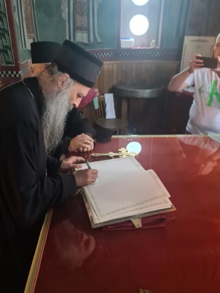 Ο Προκαθήμενος την εν Σερβία Ορθοδόξου Εκκλησίας έφτασε στην περιοχή χθες το απόγευμα. Μετά την άφιξή του και την υποδοχή που του έγινε τελέστηκε στο Καθολικό της Μονής Δοξολογία. Τον Πατρίαρχη κ.κ. Πορφύριο συνόδευε ο Επίσκοπος Ζβορνικίου και Τούζλας κ. Φώτιος.