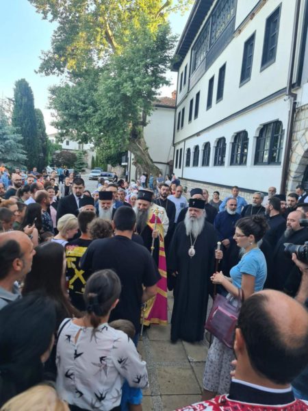 Τον Μακαριώτατο υποδέχθηκε ο Αρχιεπίσκοπος Αχρίδος κ. Στέφανος ο οποίος τον ξενάγησε στους χώρους της ιστορικής Μονής, καθώς και μοναχοί και ιερείς.