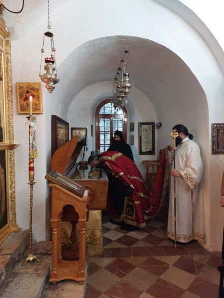 «Έρχεσαι στο σπίτι σου διότι πέρασες πέντε χρόνια θεολογικών διδασκαλιών και εργασιών εδώ» είπε ο Σεβασμιώτατος και, μεταξύ άλλων, πρόσθεσε: «Μεγάλωσες πνευματικά σε αυτό το ησυχαστήριο και αργότερα συνέχισες την εκπαίδευσή σου στη Ρωσία. Γνωρίζουμε ότι κάθε Επίσκοπος χαίρεται όταν έρχεται στη Σχολή όπου σπούδασε».