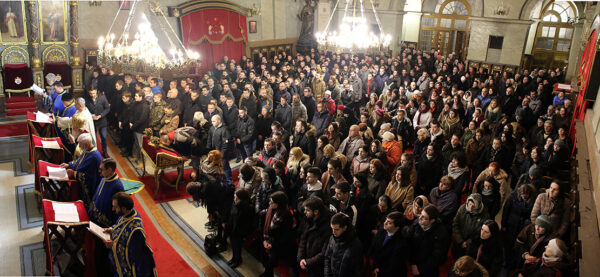 Κατά τη διάρκεια της δέησης εκατοντάδες πιστοί είχαν συγκεντρωθεί μέσα και έξω από το ναό. Συμμετείχαν επίσης κληρικοί από την σερβική πρωτεύουσα.