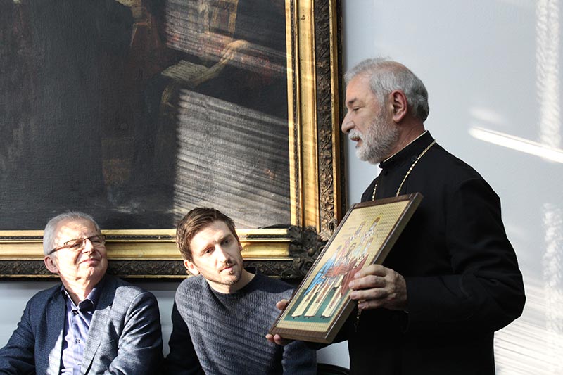 Ο Πρύτανης της Σχολής δώρισε στα μέλη της ομάδας μια εικόνα του Αγίου Σάββα και τους ευχήθηκε καλή επιτυχία στο έργο τους.