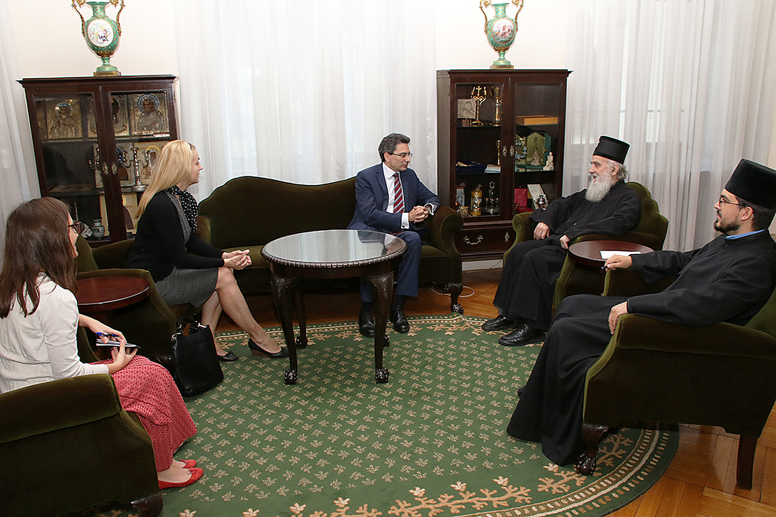 Ο Πατριάρχης Σερβίας κ.κ. Ειρηναίος στο πλαίσιο των επαφών του με εκπροσώπους των διπλωματικών αποστολών ξένων χωρών στο Βελιγράδι,συναντήθηκε χθες Τρίτη 30 Ιουλίου στο Πατριαρχικό Μέγαρο, με τον πρέσβη της Ισπανίας Ραούλ Μπαρτολόμεο.