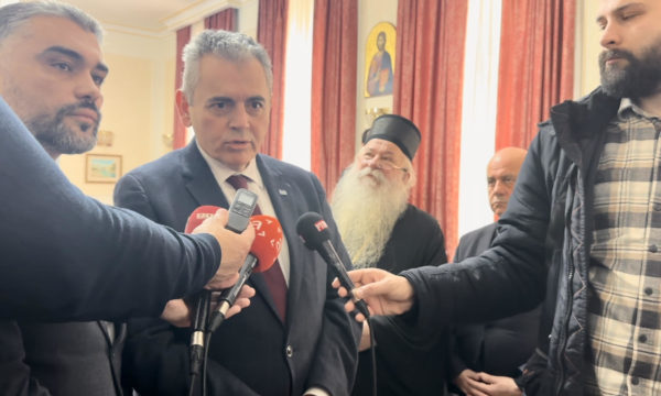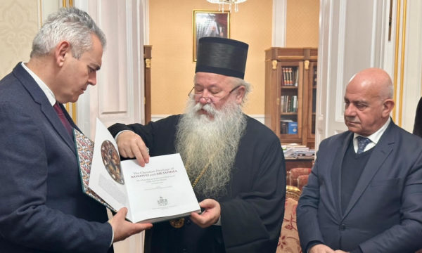 Μετά την επίσκεψη στον Καθεδρικό Ναό της Γεννήσεως της Θεοτόκου, που αποκαταστάθηκε με δωρεά του υπουργείου Άμυνας της Ελλάδος, ο Μάξιμος Χαρακόπουλος επισκέφθηκε την έδρα της Μητρόπολης, όπου τον υποδέχτηκε ο Σεβασμιώτατος Μητροπολίτης Δαμπροβοσνίας κ. Χρυσόστομος.