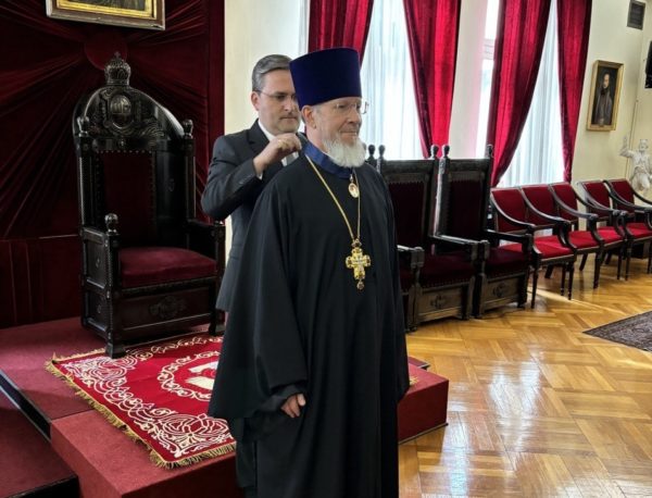 Στη συνέχεια, παρουσία του Μακαριωτάτου, του Σεβασμιωτάτου κ. Αντωνίου, του Πανιερωτάτου κ. Ειρηναίου  και του Θεοφιλέστατου Επισκόπου Ρεμεσιάνας κ. Στεφάνου, ο Νίκολα Σελάκοβιτς, υπουργός Εργασίας, Απασχόλησης, Κοινωνικών Θεμάτων και Θεμάτων Βετεράνων της Σερβίας εκ μέρους του Προέδρου της Σερβίας Αλεξάνταρ Βούτσιτς τίμησε τον π. Νικολάι Μπαλασόφ, με το Τάγμα του Σερβικού Λαβάρου (II βαθμού) ως αναγνώριση για την συνεισφορά του στην ανάπτυξη και ενίσχυση της συνεργασίας των σχέσεων μεταξύ της Δημοκρατίας της Σερβίας και της Ρωσικής Ομοσπονδίας.