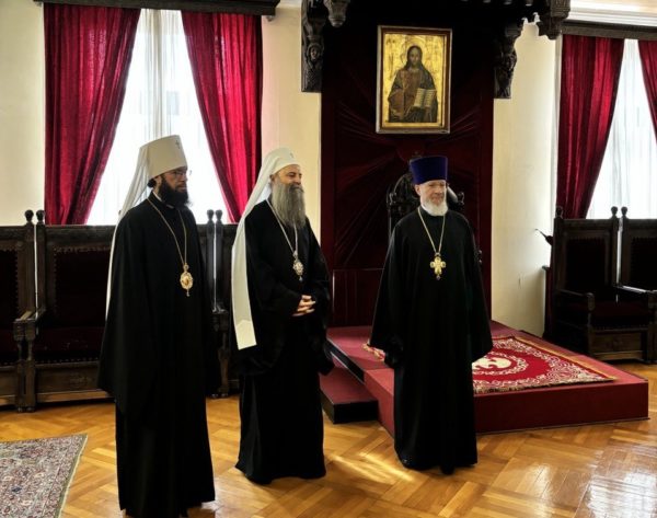 Ο Μακαριώτατος Πατριάρχης Σερβίας κ.κ. Πορφύριος , μαζί με τον Πανιερώτατο Επίσκοπο Μπάτσκας κ. Ειρηναίο, υποδέχθηκαν, χθες στην έδρα του Πατριαρχείου Σερβίας στο Βελιγράδι, τον Σεβασμιώτατο Μητροπολίτη Βολοκολάμσκ κ. Αντώνιο, Πρόεδρο του Τμήματος Εξωτερικών Εκκλησιαστικών Σχέσεων του Πατριαρχείου Μόσχας, και τον π. Νικολάι Μπαλασόφ, σύμβουλο του Πατριάρχη Μόσχας κ.κ. Κυρίλλου.