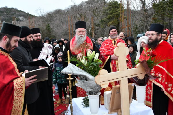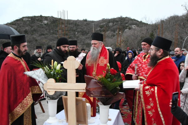 Ο Μητροπολίτης Μαυροβουνίου και Παραθαλασσίας κ. Ιωαννίκιος τέλεσε την ακολουθία του αγιασμού για την θεμελίωση του Ιερού Ναού Αγίου Αποστόλου Λουκά που χτίζεται στην περιοχή Λάπτσιτσι, κοντά στον Δήμο Μπούντβα, χθες 28 Φεβρουαρίου 2022.