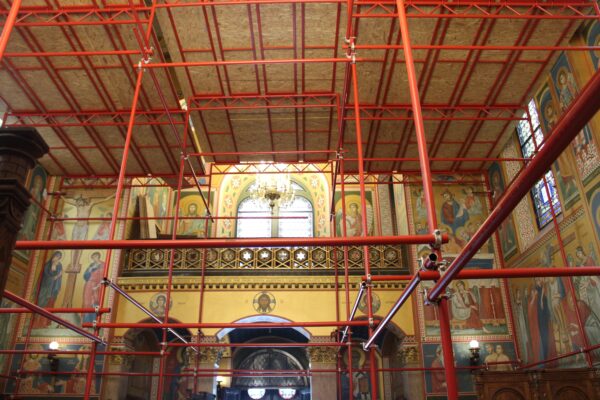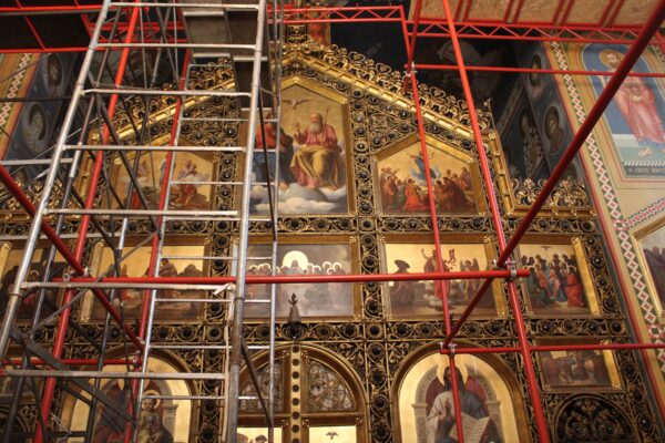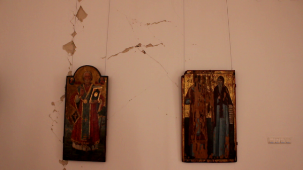 Υπενθυμίζεται ότι κατά τη διάρκεια του σεισμού είχαν καταστραφεί τμήματα των τοιχογραφιών, που είχαν πέσει στο εσωτερικό του Ιερού Ναού προκαλώντας μεγάλες φθορές, ενώ είχαν καταστραφεί και κτήρια που υπήρχαν περιμετρικά του Ιερού Ναού.