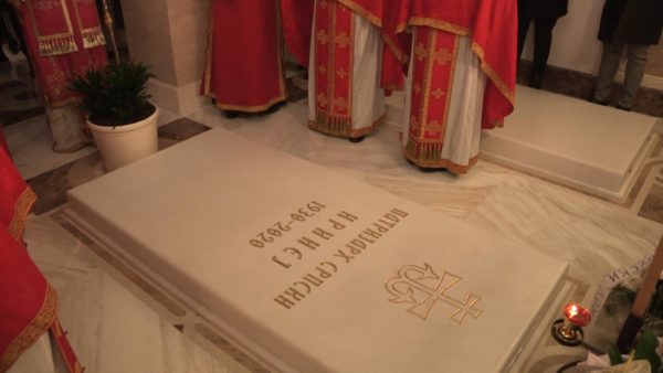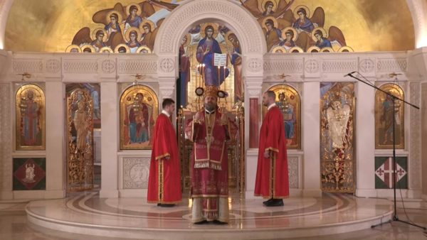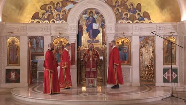 Ο Θεοφιλέστατος Επίσκοπος Ρεμεσιάνας κ. Στέφανος τέλεσε την Πανηγυρική Θεία Λειτουργία για την εορτή του Αγίου Αποστόλου Ματθαίου στον Ιερό Ναό του Αγίου Σάββα στο Βρακάρ του Βελιγραδίου την Κυριακή 29 Νοεμβρίου 2020, στην κρύπτη όπου βρίσκεται το μνήμα του μακαριστού Πατριάρχη Σερβίας κυρού Ειρηναίου.