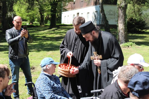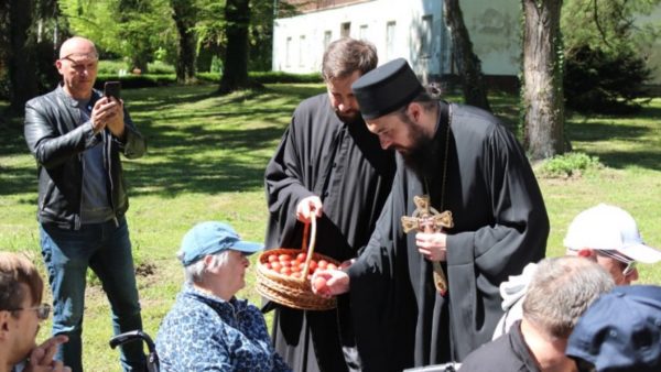 Μετά τη Θεία Λειτουργία, ο Θεοφιλέστατος μίλησε στους Ουκρανούς στα ρωσικά, τους ευχήθηκε για το Πάσχα και μετέφερε τους χαιρετισμούς και τις ευλογίες του Μακαριωτάτου.