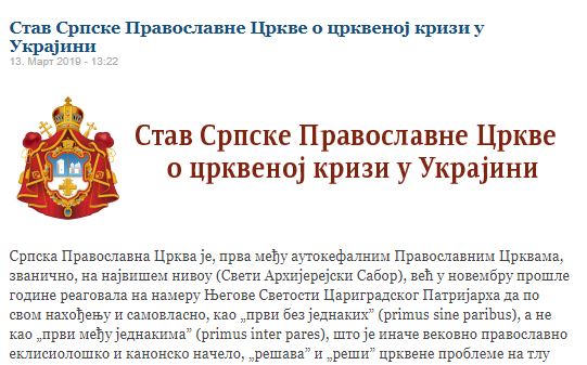 Με τίτλο “Η στάση της Σερβικής Ορθόδοξης Εκκλησίας στην κρίση της Εκκλησίας στην Ουκρανία” το πατριαρχείο της Σερβίας απέστειλε επιστολή προς όλες τις Ορθόδοξες Εκκλησίες αιτιολογώντας της στάση της απέναντι στην χορήγηση του Τόμου της Αυτοκεφαλίας στην Εκκλησία της Ουκρανίας από το Οικουμενικό Πατριαρχείο.