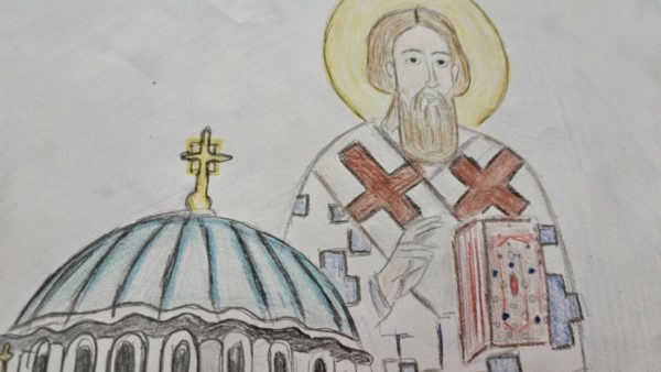 Ο Προκαθήμενος της Σερβικής Εκκλησίας θέλησε να δει και να θαυμάσει από κοντά τις δημιουργίες των μικρών μαθητών που είχαν ως επίκεντρο το ναό του Αγίου Σάββα καθώς και στιγμές από το βίο του.