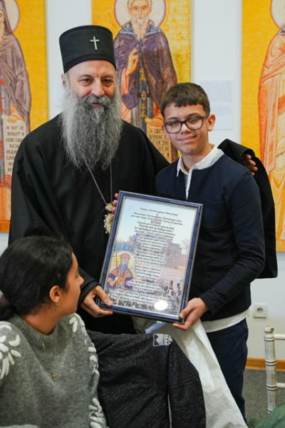 22/01/2025 22/01/2025 Εκδήλωση αφιερωμένη σε παιδιά από το Κοσσυφοπέδιο και τα Μετόχια πραγματοποιήθηκε στο Βελιγράδι κατόπιν ευλογίας του Πατριάρχη Σερβίας κ.κ. Πορφυρίου.  Η εκδήλωση πραγματοποιήθηκε στο Ενοριακό Σπίτι στον Άγιο Σάββα όπου ο Μακαριώτατος παρέθεσε γεύμα σε νέους και νέες που κατοικούν στην αρχέγονη κοιτίδα του σερβικού έθνους. Τα παιδιά προέρχονταν από τις περιοχές Orahovac, Osojan, Velika...