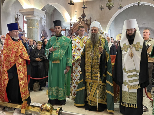 Στον καθαγιασμό των σταυρών για τους τρούλους και το μωσαϊκό πάνω από την είσοδο του ναού της Αγίας Τριάδος (Πατριαρχείο Μόσχας) στην περιοχή Podvorje του Βελιγραδίου, παρέστη χθες ο Πατριάρχης Σερβίας κ.κ. Πορφύριος.