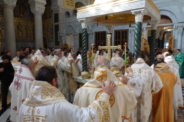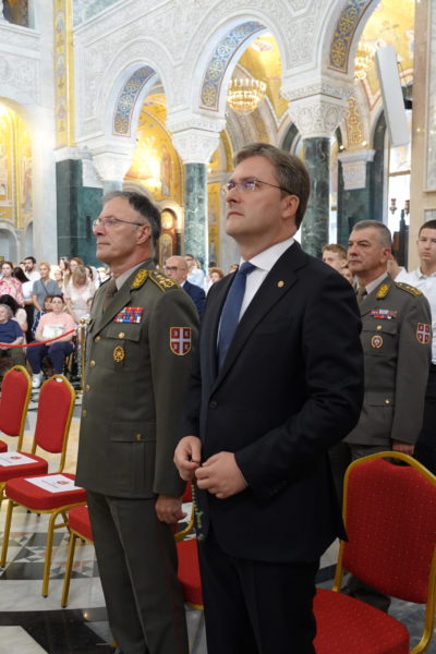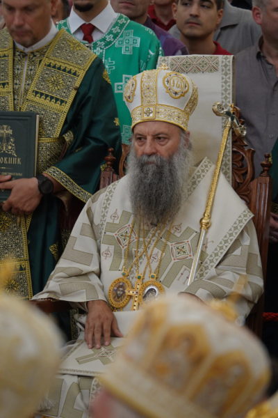Της Θείας Λειτουργίας προέστη ο Πατριάρχης Σερβίας κ.κ. Πορφύριος. Συλλειτούργησαν Επίσκοποι της Σερβικής Εκκλησίας, ιερείς και διάκονοι. Παρέστησαν, επίσης, ο Υπουργός Πολιτισμού της Σερβικής Δημοκρατίας, Νικόλα Σελάκοβιτς, εκπρόσωποι των Ενόπλων Δυνάμεων της Σερβίας, καθώς και εκπρόσωποι λοιπών θρησκευτικών κοινοτήτων.