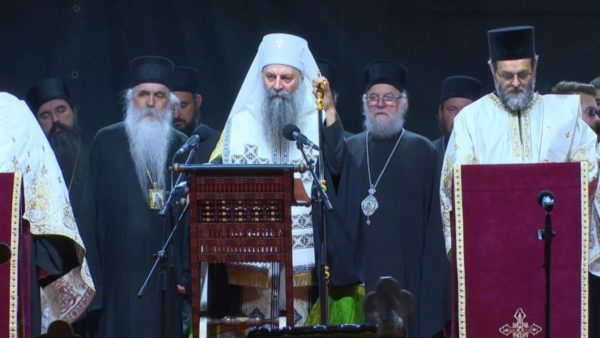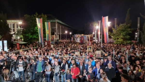 Χιλιάδες Σέρβοι ανταποκρίθηκαν στο κάλεσμα της Ιεράς Συνόδου των Επισκόπων του Πατριαρχείου Σερβίας και συμμετείχαν χθες το βράδυ στην εθνική προσευχή που πραγματοποιήθηκε μπροστά από τον Καθεδρικό Ναό του Αγίου Σάββα στο Βελιγράδι.