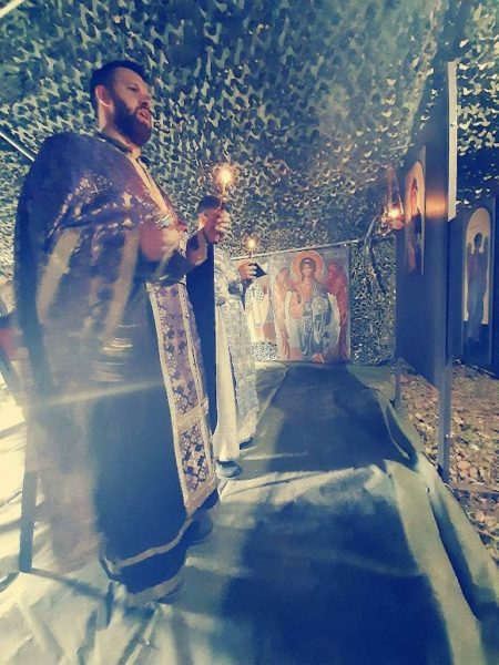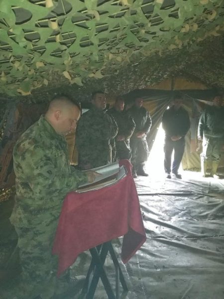 Κατά τη διάρκεια της προετοιμασίας και της εκπαίδευσης, δημιουργήθηκε ένας χώρος λατρείας σε συνθήκες πεδίου στο γήπεδο του πεδίου όπου διεξήχθη η διακλαδική άσκηση. Ο χώρος έγινε προκειμένου σε αυτόν να καταφύγουν όσοι επιθυμούσαν να μετέχουν στις ιερές ακολουθίες της Εκκλησίας αλλά και για να προσευχηθούν.